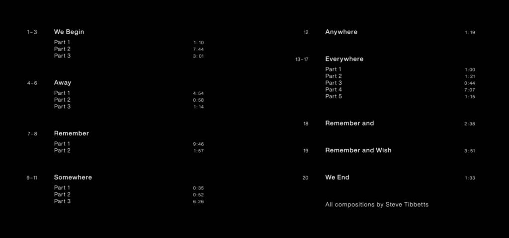 Und this is the tracklist from „Close“… and there‘s a rhythm in it, for sure…. in den Klanghorizonten am kommenden Donnerstag spiele ich daraus: Away, Part 3, We Begin, Part 3, sowie Away, Part 1…