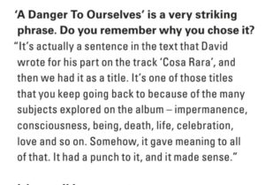 Keine Spur hingegen von ironischen Brechungen oder schwarzen Humor bei Lucrecias neuem Streich: es wäre spannend, mal mit Lucrecia Dalt, der neuen besten Freundin von David Sylvian (zu seinen Konzerten kamen ja auch gerne viele schwarzgekleidet), ein Interview über ihre Beziehung zu „Goth“ zu führen. Ihre Erinnerungen, ihre Geschichten dazu. Eine Spezialistin für Horrorfilme ist sie allemal. „A Danger To Ourselves“ ist eines der grossartigsten Alben des Jahres 2025, nicht nur in meinen Ohren, und mit einem Cover, das noch jeden ehemaligen „Grufti“ hinterm Ofen hervorlocken würde. Im Ernst, ein klanglich restlos faszinierendes Werk. HIER das Video zum Song „Divina“. Übrigens ist fas Cover eine Hommage an David Lynchs „Twin Peaks“. Zuk Titel des Albums sagt sie: